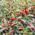 Feurig scharfer Chili mit spitzen, aufrecht wachsenden Früchten. Niedrige, buschige Pflanzen mit unzähligen, 3 – 4 cm langen, dünnfleischigen Früchten, die von Grün nach Rot abreifen. Idealer Chili zum Trocknen. Unentbehrlich für die scharfe asiatische Küche. Auch für die Topfkultur geeignet.